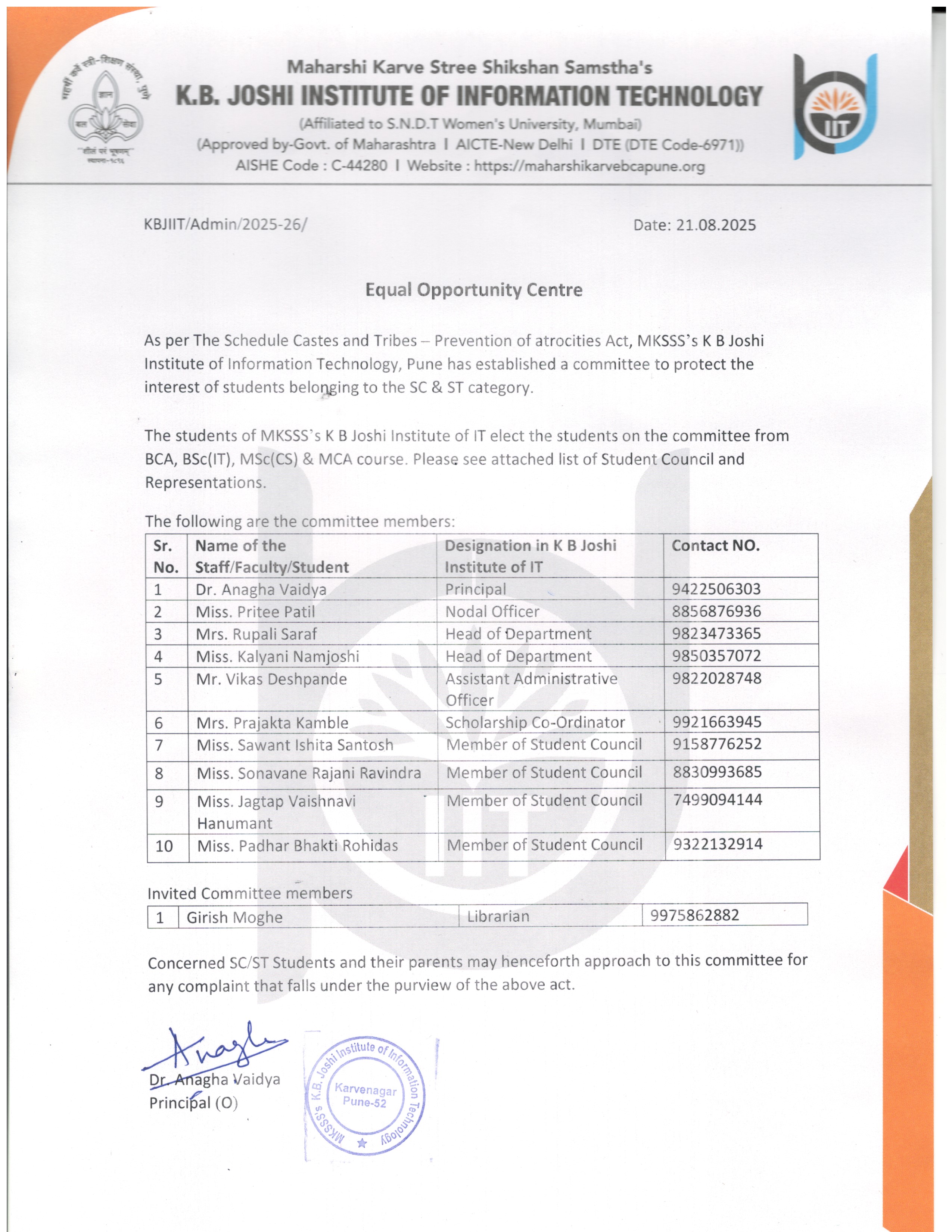 K. B. Joshi Institute of Information Technology, established in 2003 under Maharshi Karve Stree Shikshan Samstha, is committed to empowering women through quality IT education. With modern labs, experienced faculty, and a curriculum aligned with industry needs, the institute helps students build strong technical and professional skills.